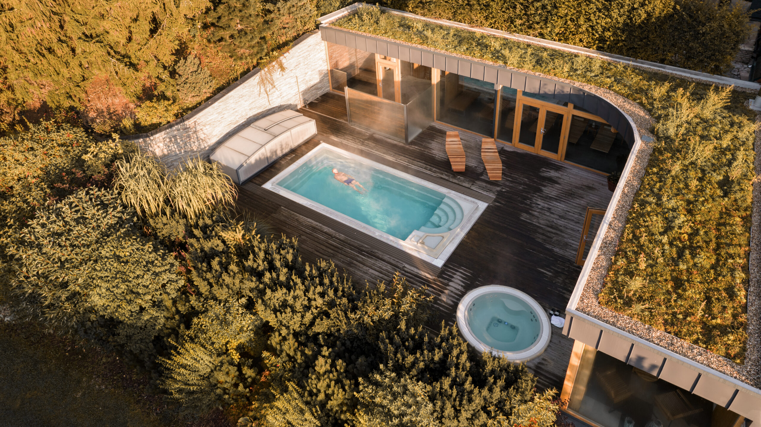 For complete relaxation of both body and mind, indulge in our thermal pool with a counter-current system and a hot outdoor whirlpool on the terrace. The nature-inspired interior features a Finnish sauna, a bio sauna, and a relaxation room. For tired feet, try our Kneipp path – a hydrotherapy treatment that stimulates the lymphatic and nervous systems.