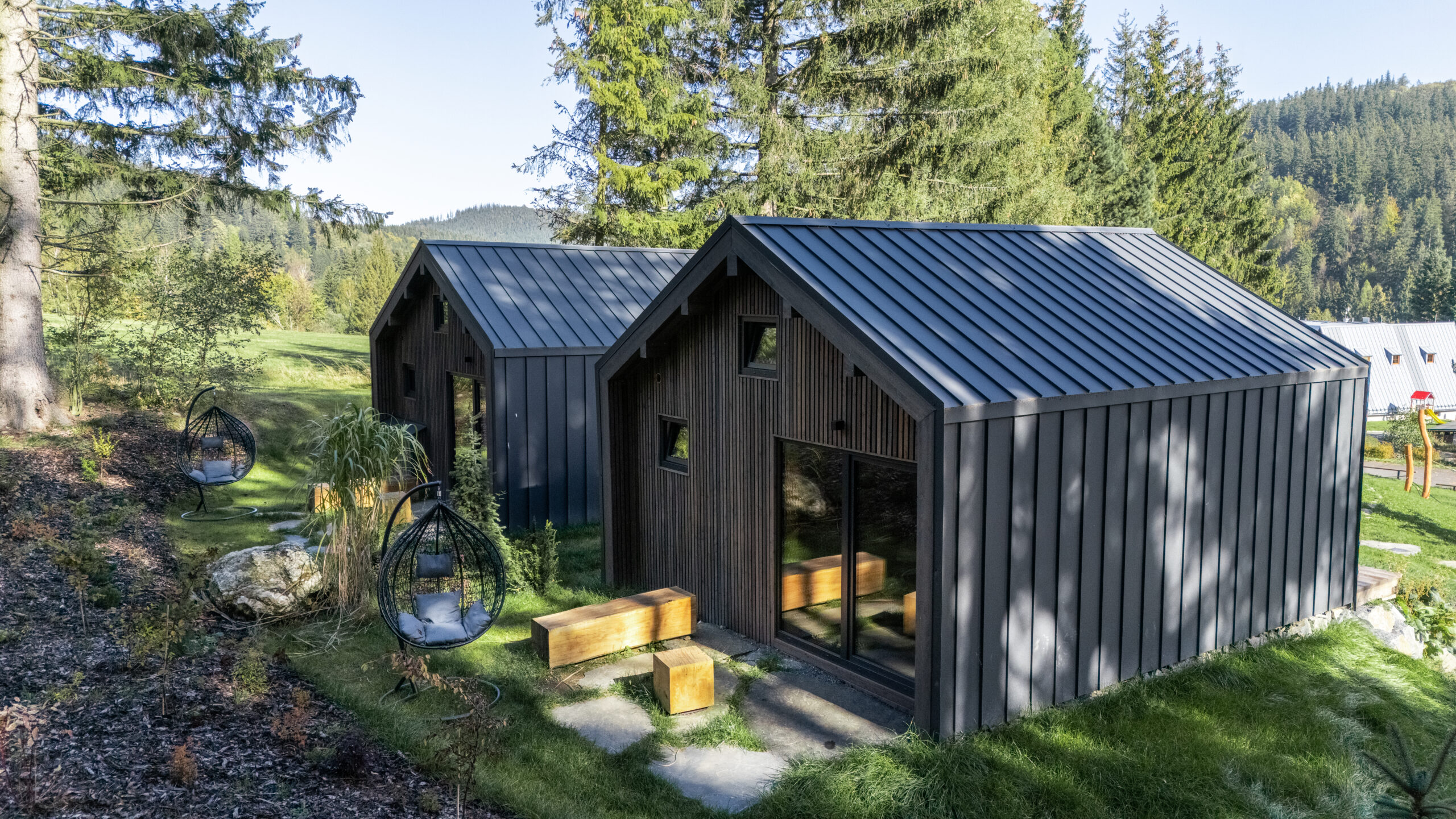 Nowoczesna cha(le)tka oferuje przytulne, całoroczne zakwaterowanie przy lesie w Jesionikach, bezpośrednio na terenie resortu z bikeparkiem, ośrodkiem narciarskim, strefą wellness oraz restauracją. To idealne miejsce dla par, rodzin oraz gości szukających spokoju i komfortu w otoczeniu przyrody.