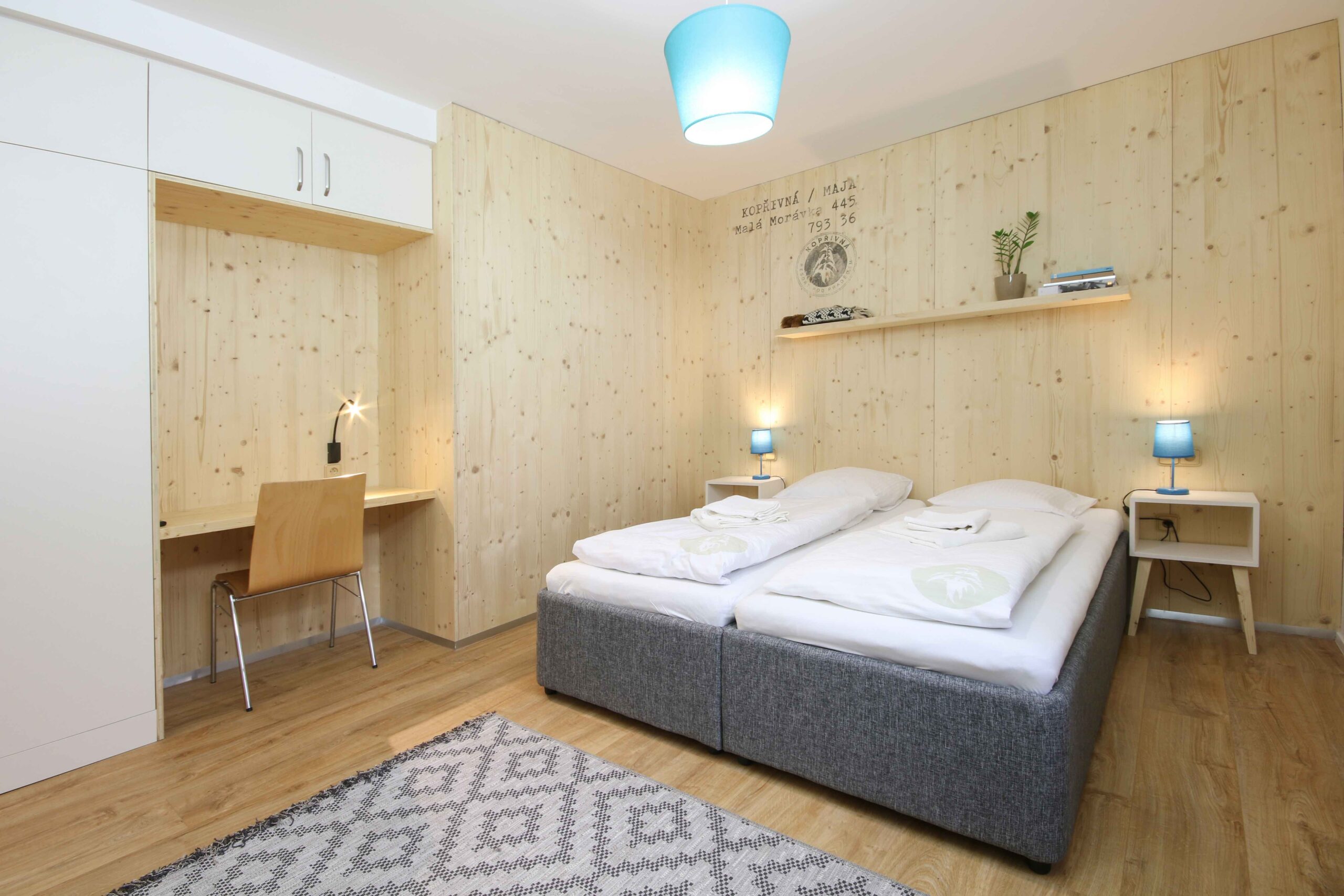 Každý pokoj má k dispozici vlastní uzamykatelný box v lyžárně a úschovně kol pro bezpečné uložení vybavení. Po dni plném aktivit si můžete dopřát wellness s masážemi, saunováním a venkovními lázněmi. Ideální zázemí pro regeneraci po lyžování i turistice v Jeseníkách.